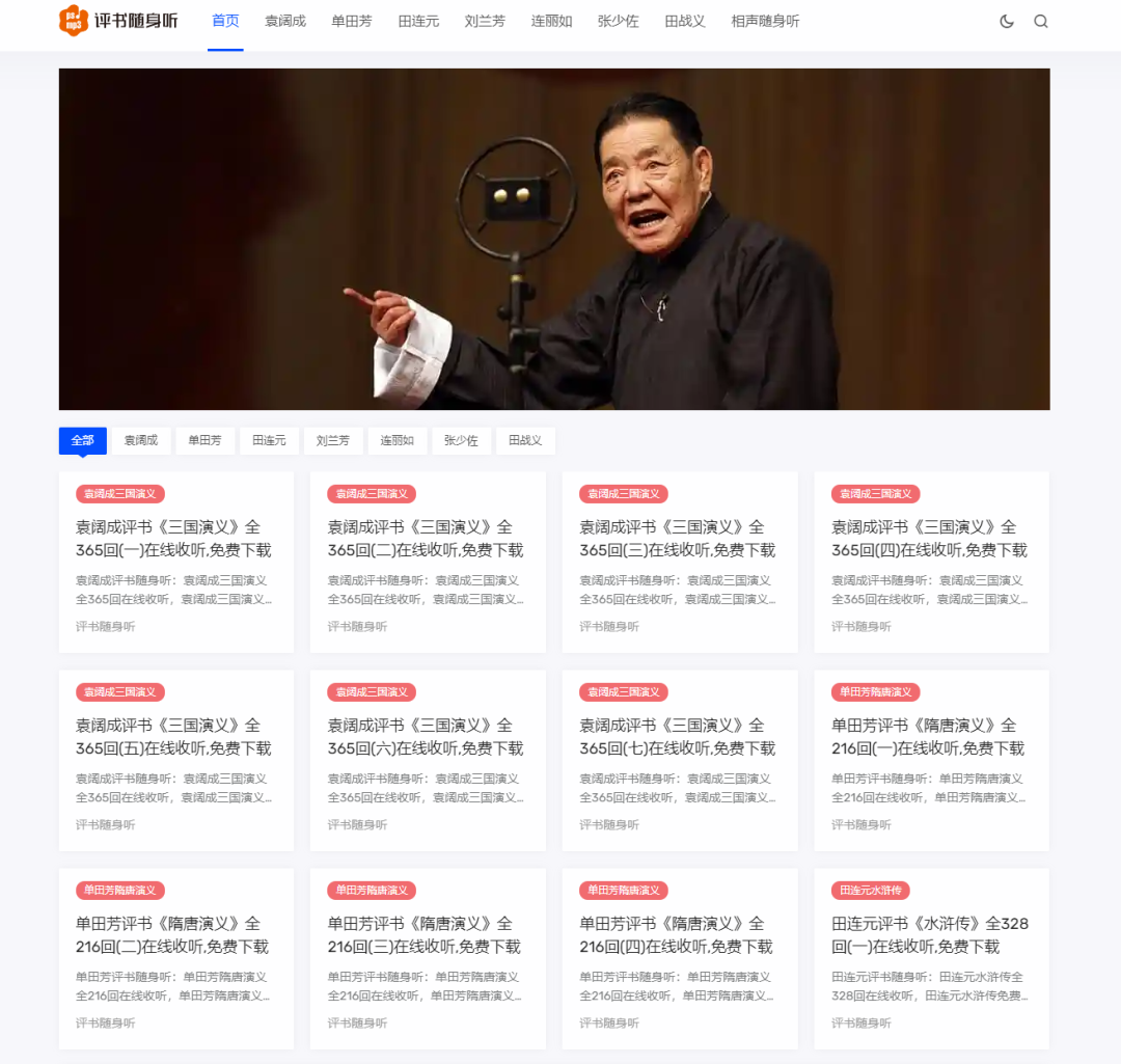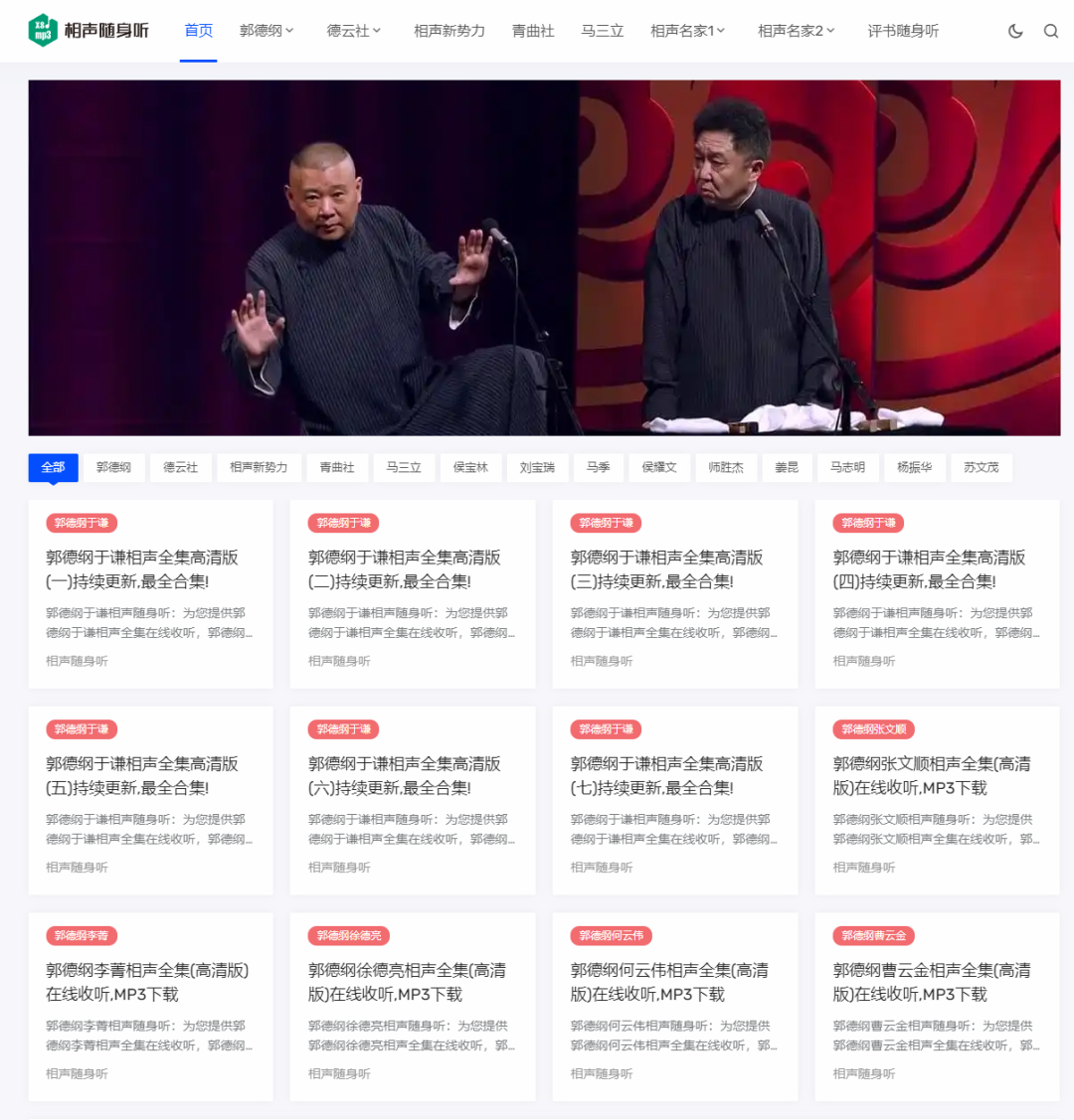 一个相声大全免费听的在线网站,网站为用户免费提供德云社、郭德纲、于谦、马三立、侯宝林、岳云鹏、相声新势力、青曲社等等的相声大全,打开网站就能免费收听,非常不错。
