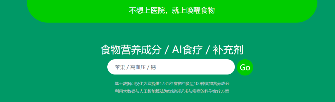 唤醒食物是一个食疗网站,利用 AI 大数据分析统计的技术,进行相关事物治疗,内容挺丰富,感兴趣的网友可以收藏体验了。