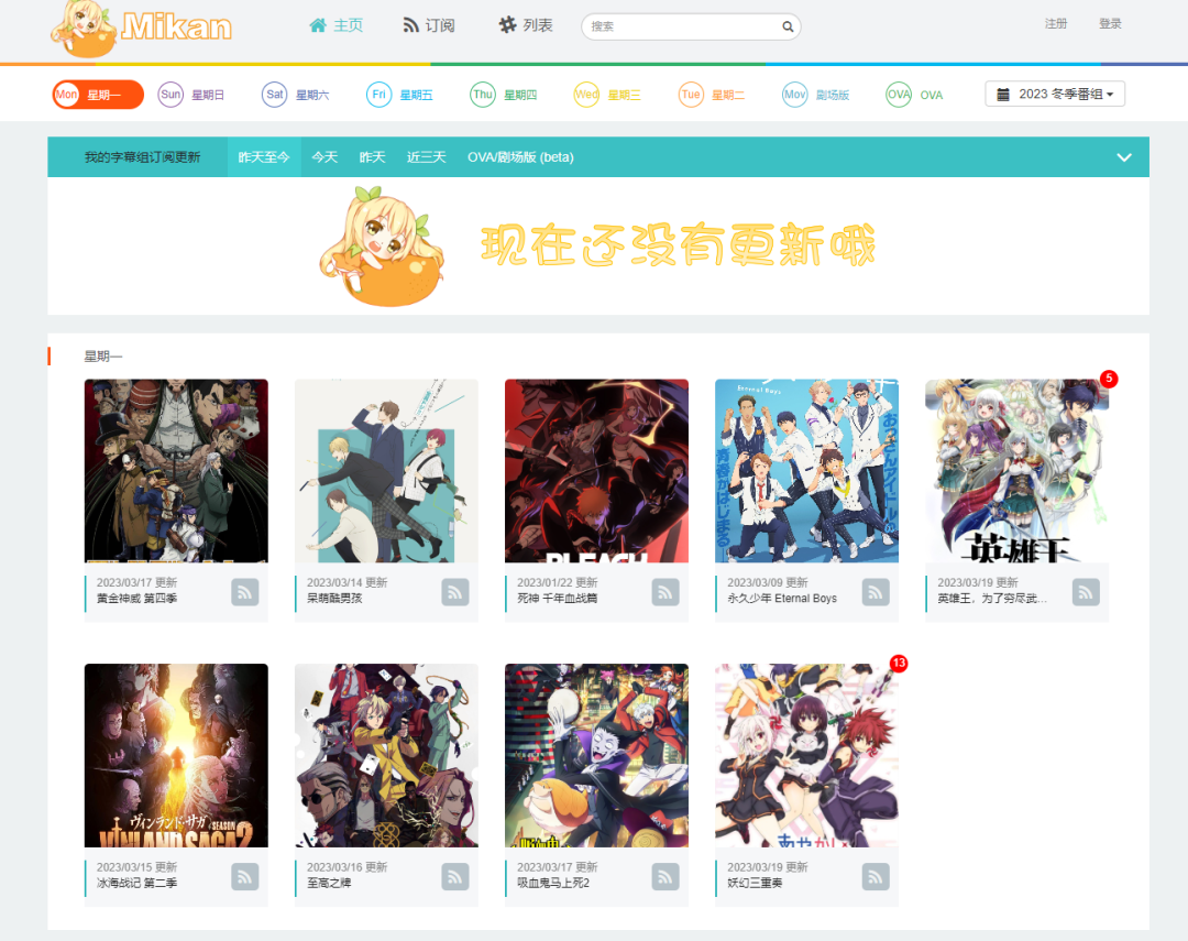 蜜柑计划是一个动漫新番下载网站,可以订阅和推送当季新番的各个字幕组资源,无需登录即可下载,提供的是磁力链接,可以用迅雷进行下载。