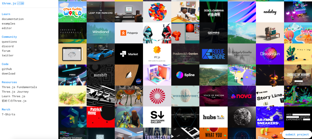 网站中所有作品都是由开发者创作,点击右下角的「Submit Project」也可以上传自己的项目。