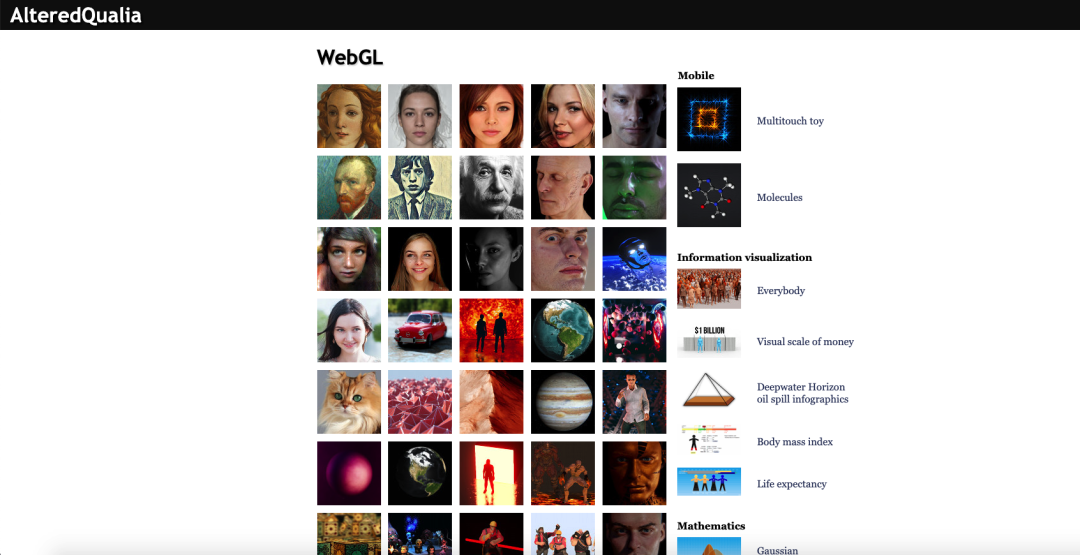 AlteredQualia 是一位 WebGL 大神的个人主页,里面收录了非常多网页 3D DEMO。