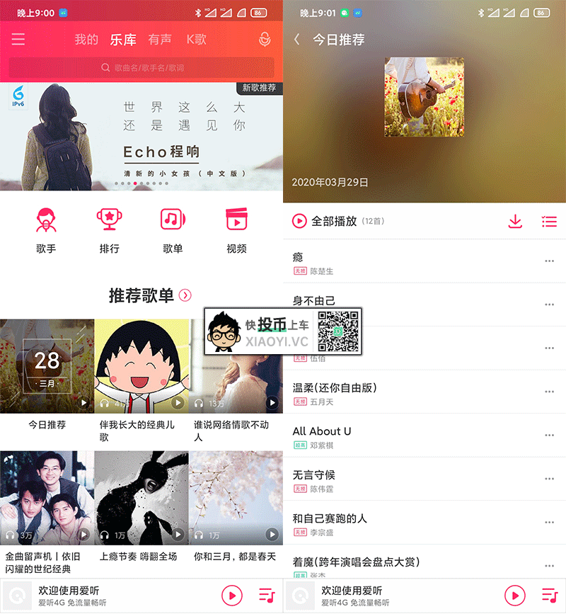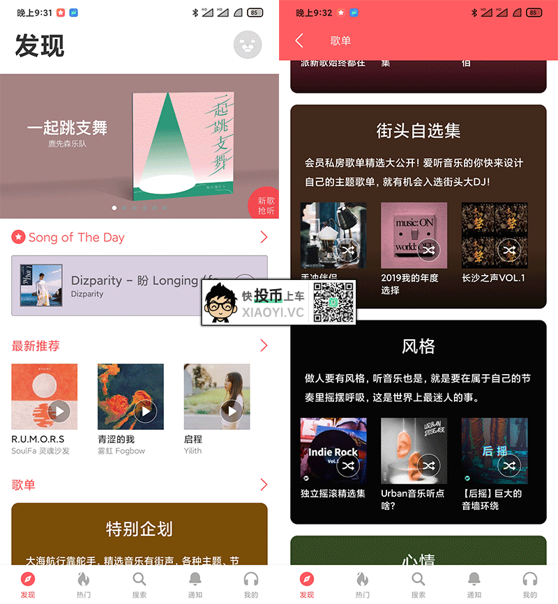 「网易云音乐」曲库没有其它音乐平台多,不过小众歌还是比较多的。但近两年面临版权问题,小众歌也变少了。既然歌荒,那就找其它小众歌平台吧,下面是今天雷锋哥找到的「小众音乐」APP,有兴趣的可以下载听听看。