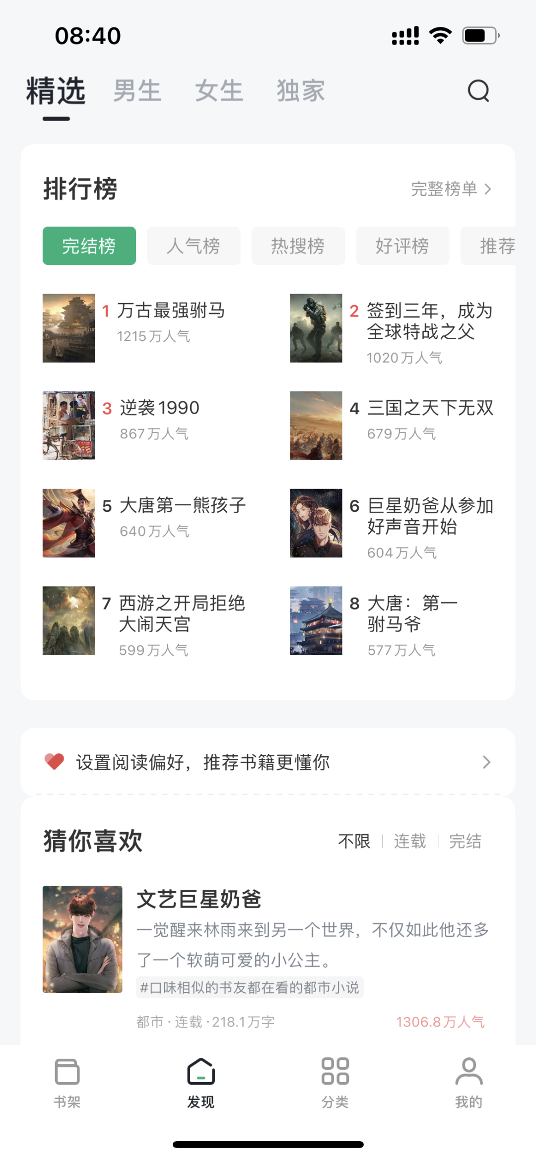 和安卓端功能差不多,支持一键缓存、阅读自定义等,言情、科幻、仙侠、历史、悬疑、竞技等一应俱全,喜欢的小伙伴们不妨一试。