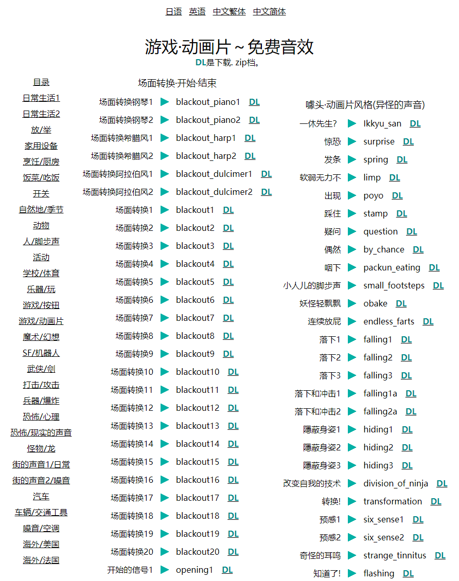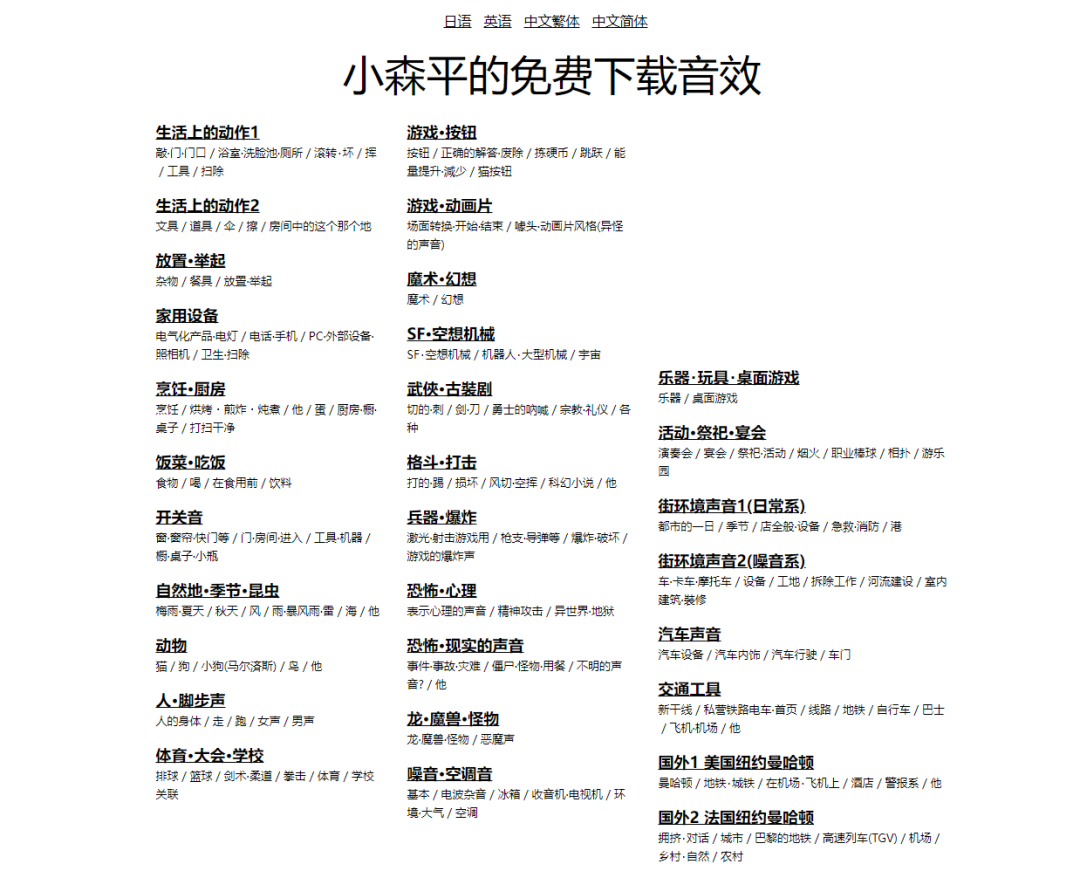 这个音效网站支持试听,支持直接下载,无需登录,有一个不足之处的话,就是不支持搜索,这样要查找起来可能还是麻烦一点,但是音效质量还是非常高的。