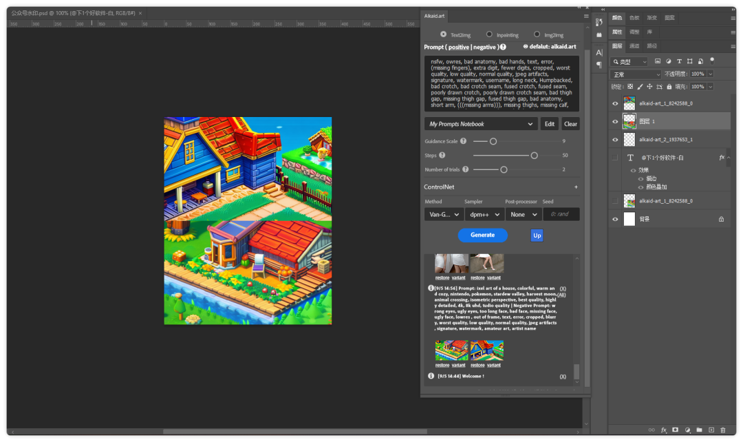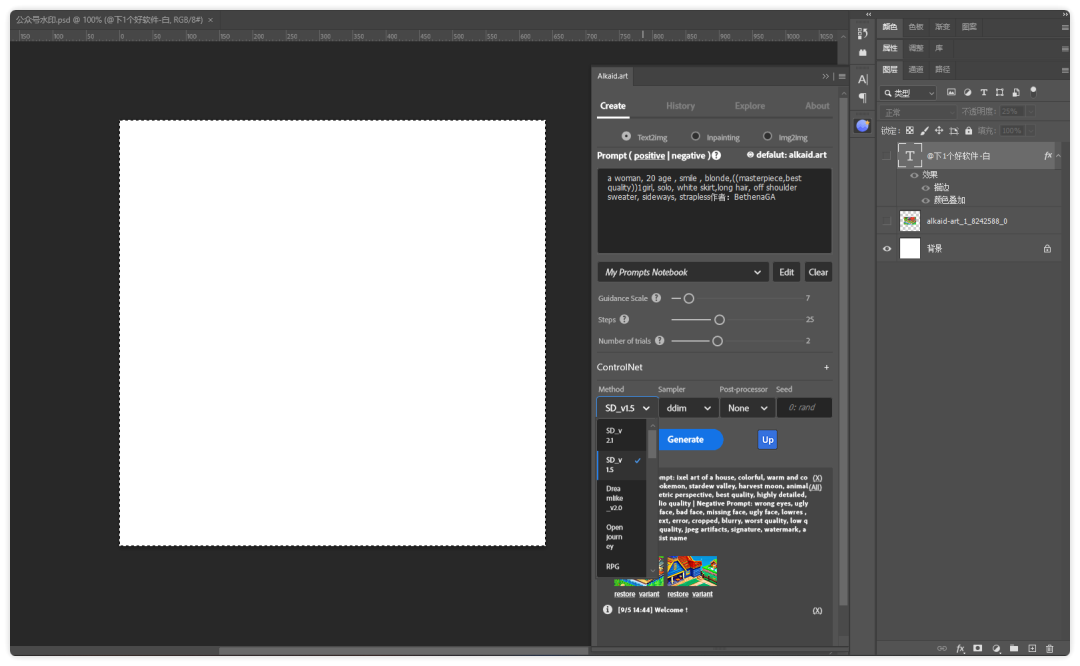 所以今天分享这款 PhotoShop 插件「Alkaid」基于 Stable Diffusion 绘图,它在服务器上部署好了,无需本地部署,安装好后就可以使用。