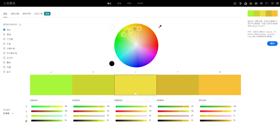配色网站非常多,作为设计软件开发公司,Adobe 当然也有自己出品配色网站:「Adobe color CC」。