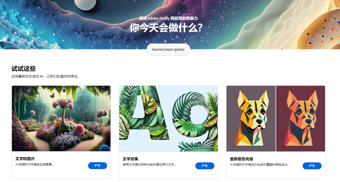 Firefly 提供两个模式,一种是利用文字生成图像的功能,另一种是字体效果编辑。