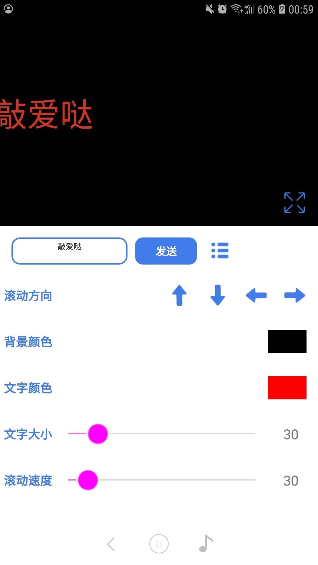 使用也超级简单,直接选择自己需要的功能,然后直接输入文字,可以自定义设置想设置的效果。背景颜色,活动方向,文字颜色,字体大小,滚动速度。