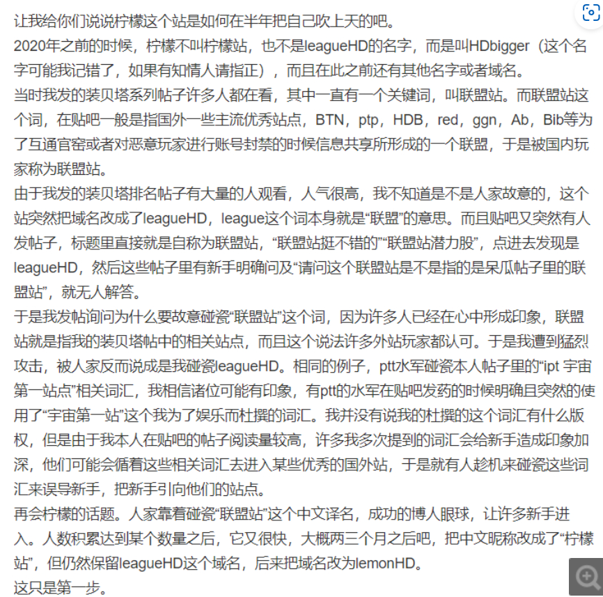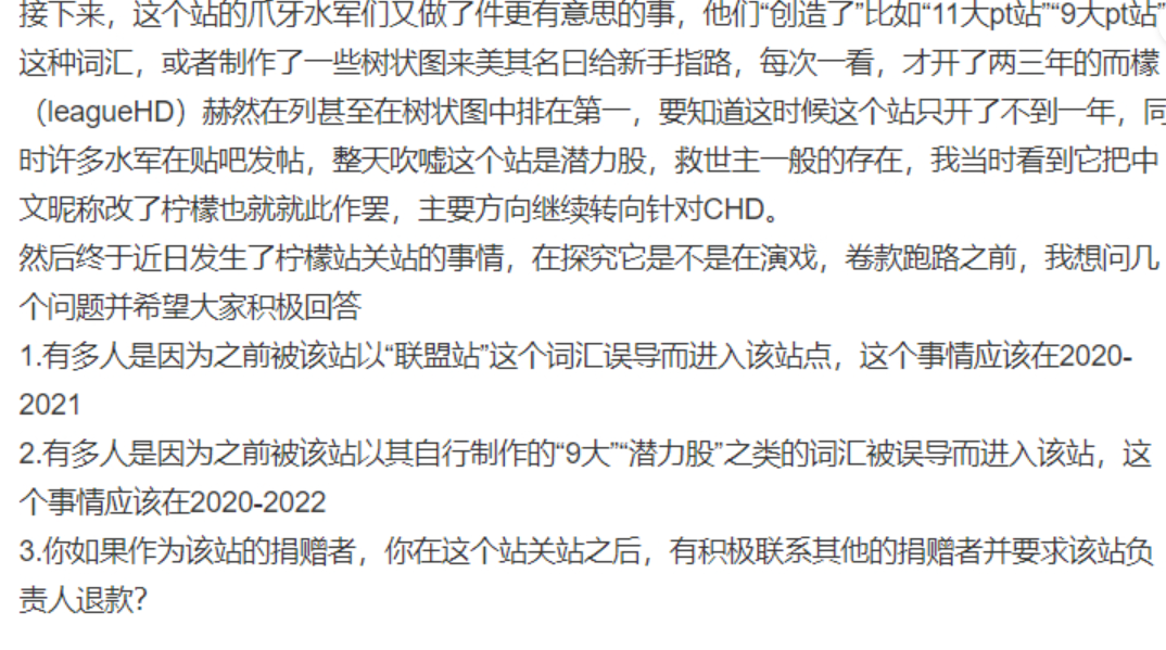 卡某某认为柠檬站是通过使用“联盟站”这个词汇、自行制作“9大”“潜力股”等词汇来误导新手用户,吸引人气,达到站内人数积累的目的,并且有关站卷款跑路的嫌疑。卡某某还提出了几个问题,询问读者是否被该站点误导过。