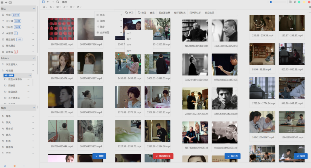 这样还是太过麻烦,经常处理文件的朋友可能会整一个素材管理器,相较于文件管理器,素材管理器的使用场景是:它不侧重于文件存储本身,更多用于文件展示与使用环节,可以加上各种标签,在需要联动其他软件处理文件的时候,检索和引用都更方便。