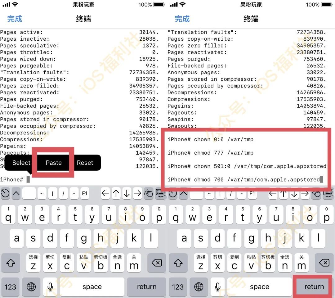 如图在输入的地方长按,然后选择-Paste,最后点击右下角的return
