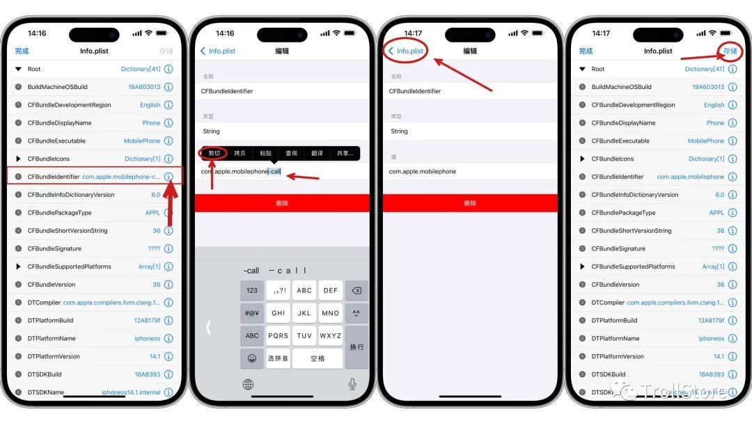 如果要卸载或恢复,按原方法,将com.apple.mobilephone改回com.apple.mobilephone-call 然后通过巨魔点击Rebuild Icon Cache刷新即可!