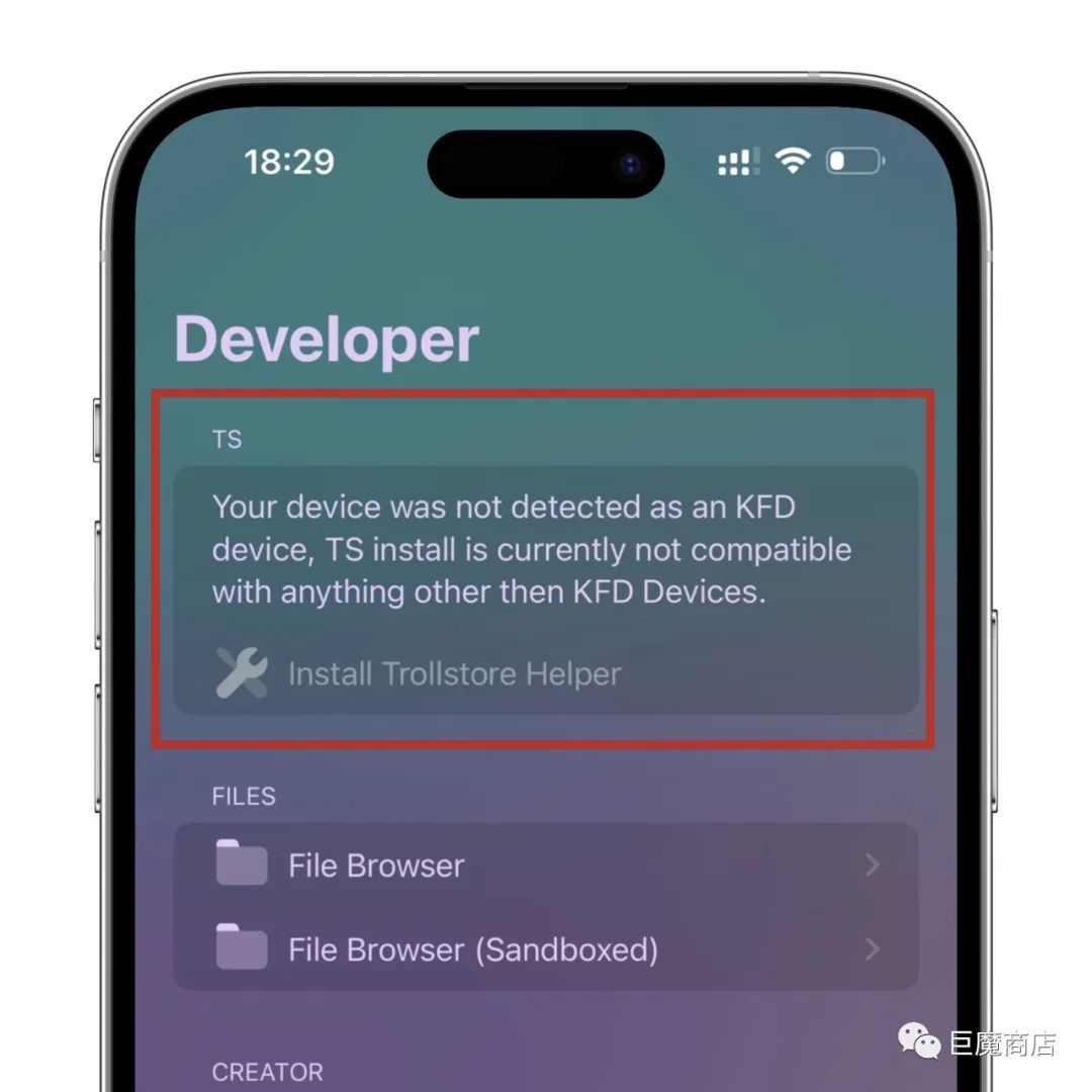 with anything other then KFD Devices.且点击Install Trollstore Helper是灰色的,点不动。遇到这个问题,其实解决方法很简单。