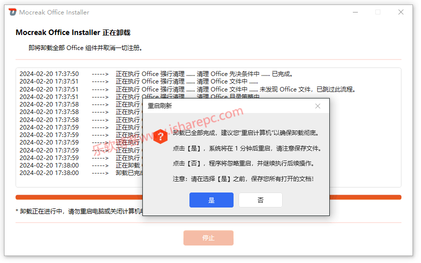 卸载完成后,需要重启电脑以彻底删除残留文件。