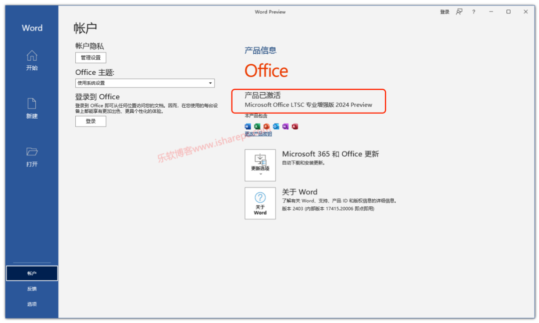 安装完成后,Office已自动激活,激活的方式采用的应该是KMS。