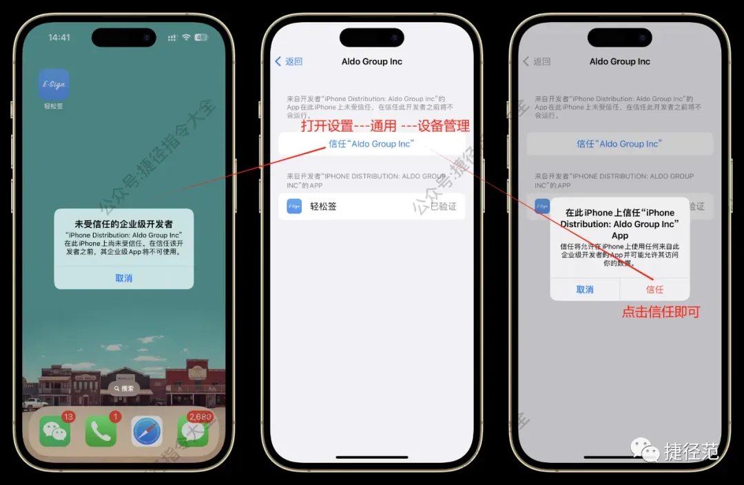 装不了巨魔没关系,轻松签也可以照样用,首先复制下方的地址,打开Safari浏览器,然后直接点击安装,安装好了根据下方的图片提示然后点击信任,信任后即可打开,如果下载后提示无法验证,那么代表已经掉签了,可以等待下次分享或者定制个人证书。