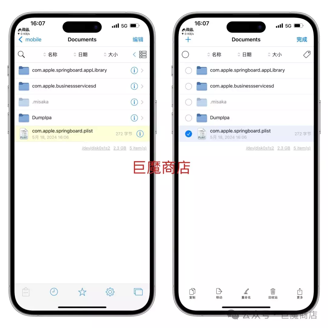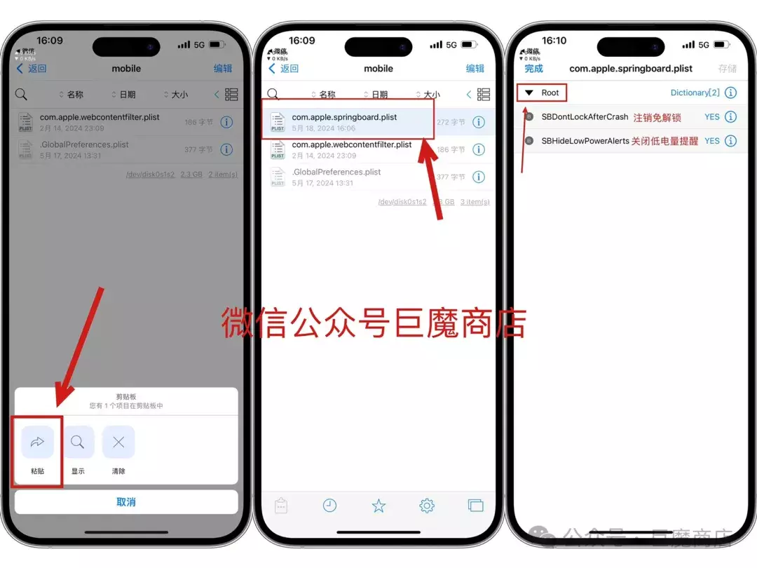 点击粘贴,随后可以看到 com.apple.springboard 已经移动到这个目录了。点击 com.apple.springboard ,再点击Root 可以看到