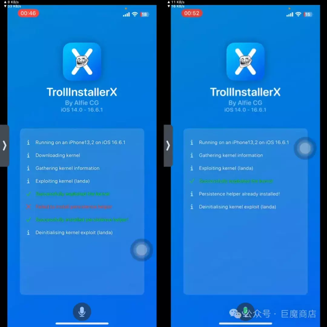 一定要记住,刚开始的时候用TrollnstallerX安装巨魔商店没有成功,再用 trollstar 这款工具安装巨魔商店可能还是会出现应用白图标。