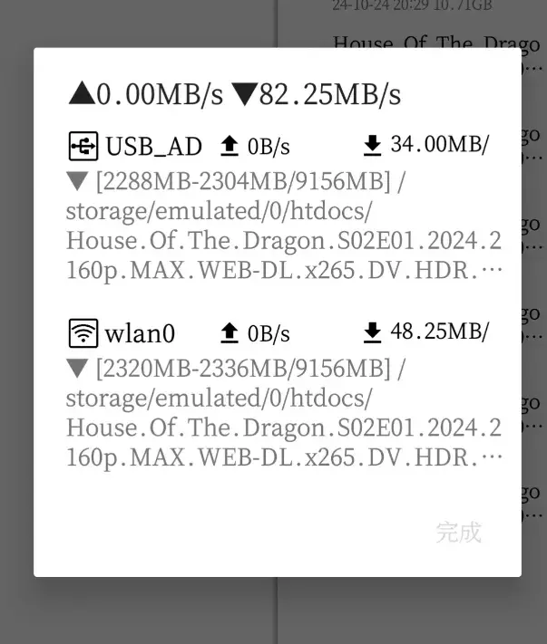 但这远远不是多轨快传的极限,上面是手机在用一WIFI下,连上数据线,是双轨。