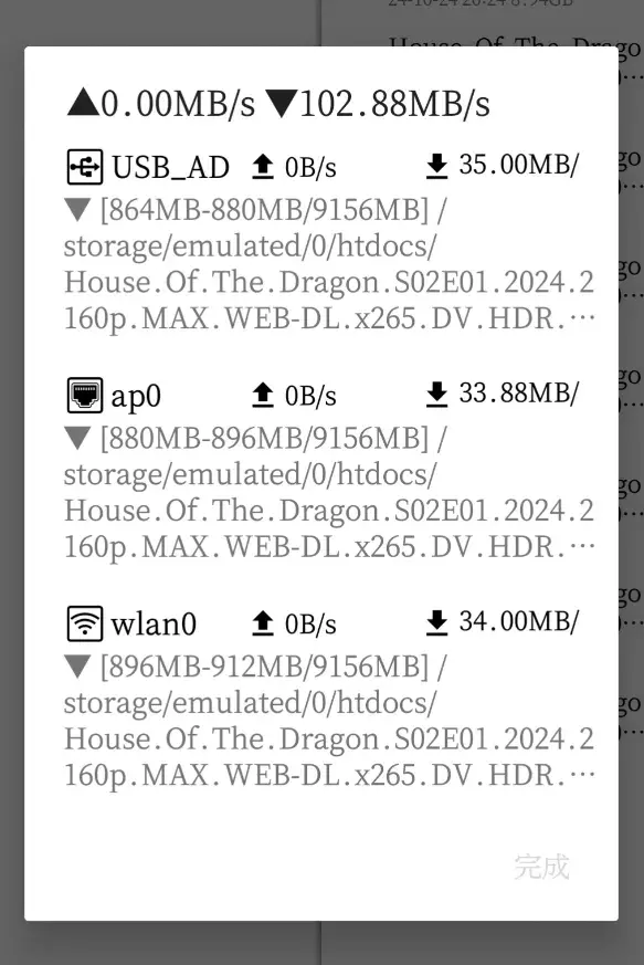像是有的设备,WIFI只有2.4G模式的,数据线没有USB3.0,线材问题导致的传输慢等等,都可以用多轨快传将任务分割开来,多通道一起传输。