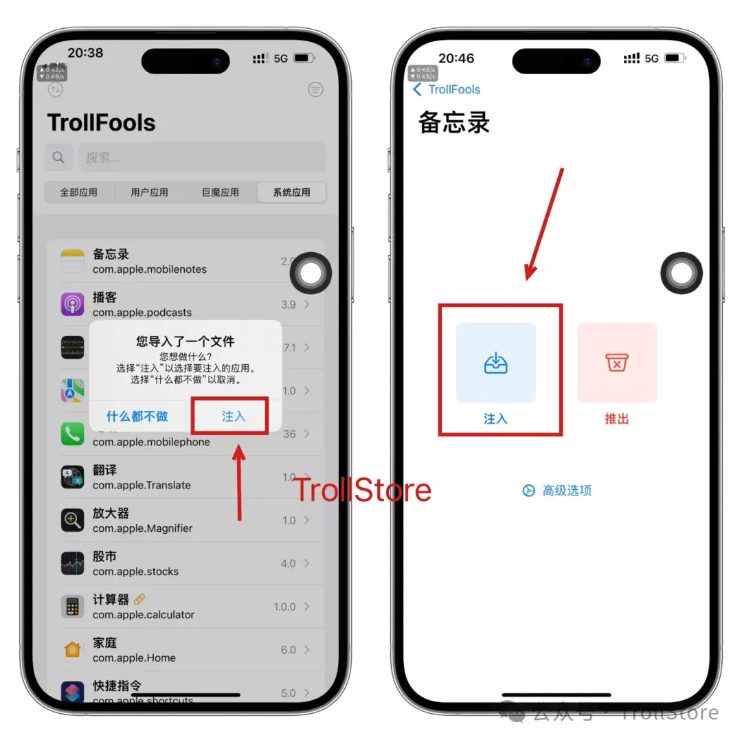如果你没有安装TrollFools 这款注入工具也是在文末获取,原版,二改都有!用TrollFools 打开以后,点击注入,找到你需要注入的app点击它即可注入完成,如果出现注入以后app无法打开,你可以退出注入即可正常打开!具体你需要注入什么app你可以自行选择。