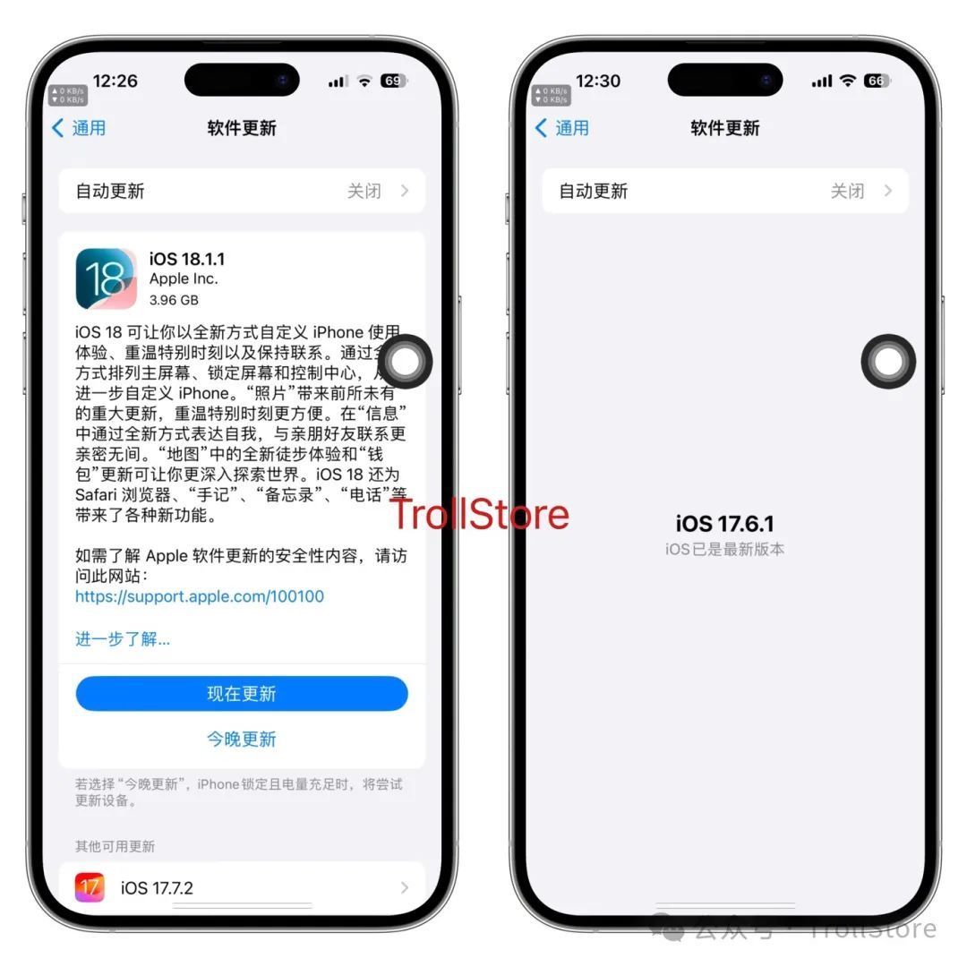 最后说一下,如果你有TrollStore 则用不上这个描述文件,因为TrollStore 可以永久屏蔽系统更新,具体参考这篇文章一键永久屏蔽系统更新,小白必看,好了以上就是今天所有内容,欢迎大家在留言区讨论交流!