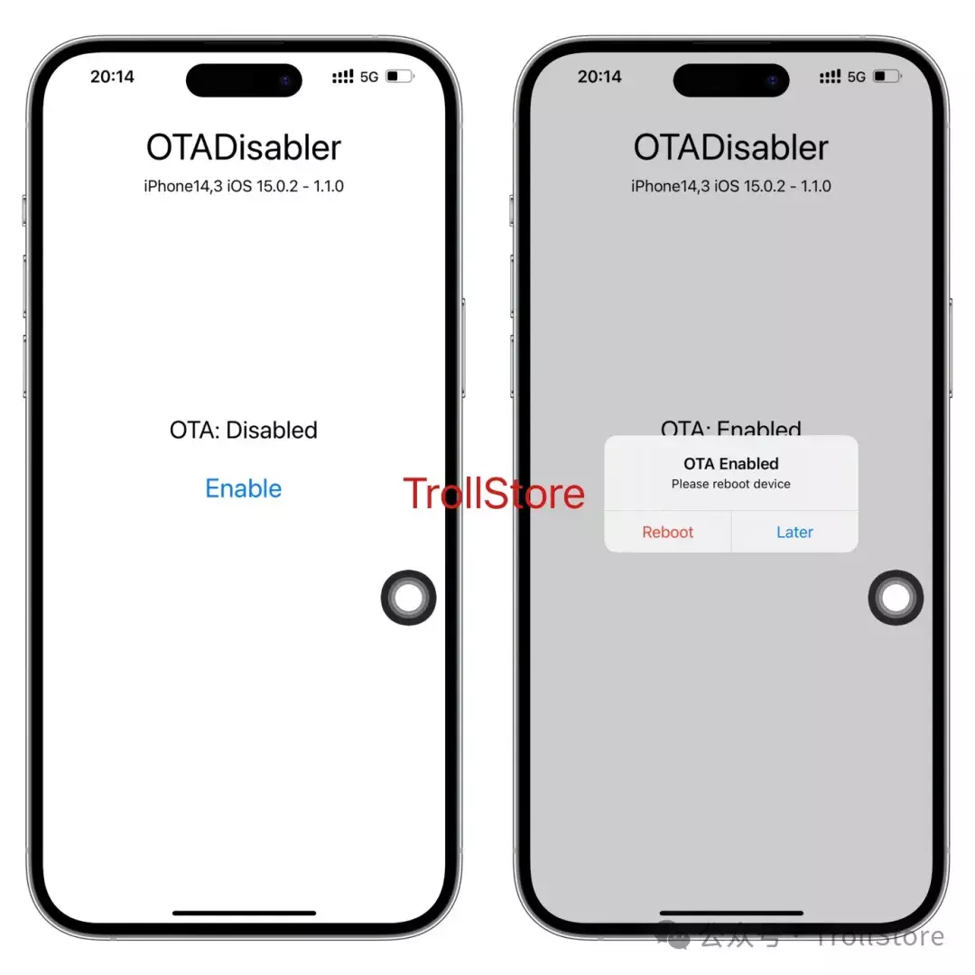 大家好!又来炒冷饭了!今天给大家分享的这款工具可以一键永久屏蔽手机系统更新,名字叫OTADisabler,这款工具支持系统iOS 14-iOS 16.6.1/17.0 需要特别注意的是使用这款工具需要手机有 TrollStore ,如果你的手机不支持TrollStore 且也想要屏蔽系统更新,可以参考这篇文章最新iOS 18、iPadOS 18屏蔽更新方法
