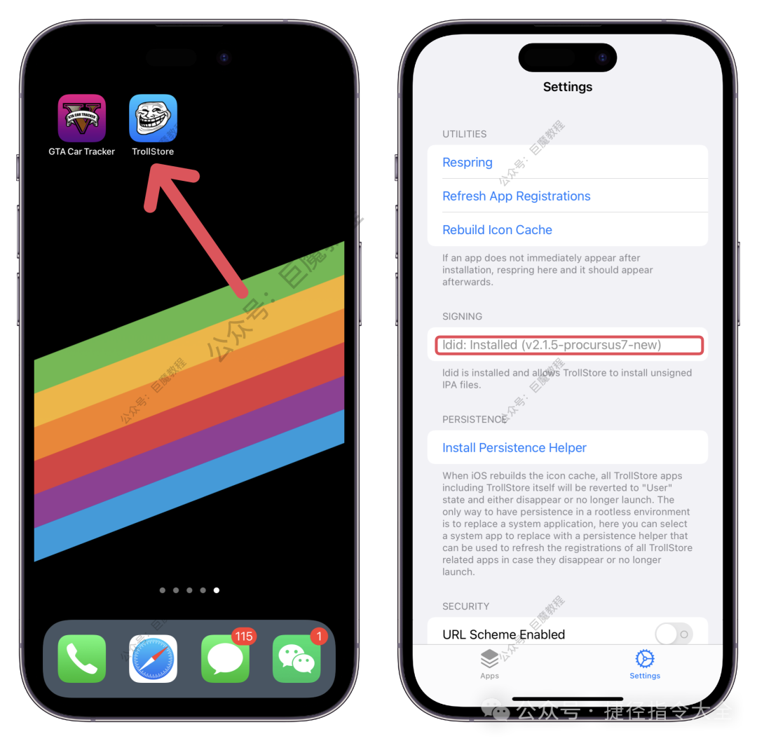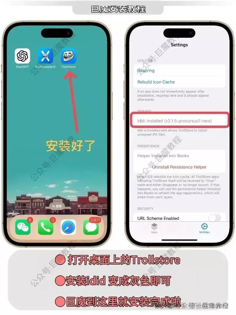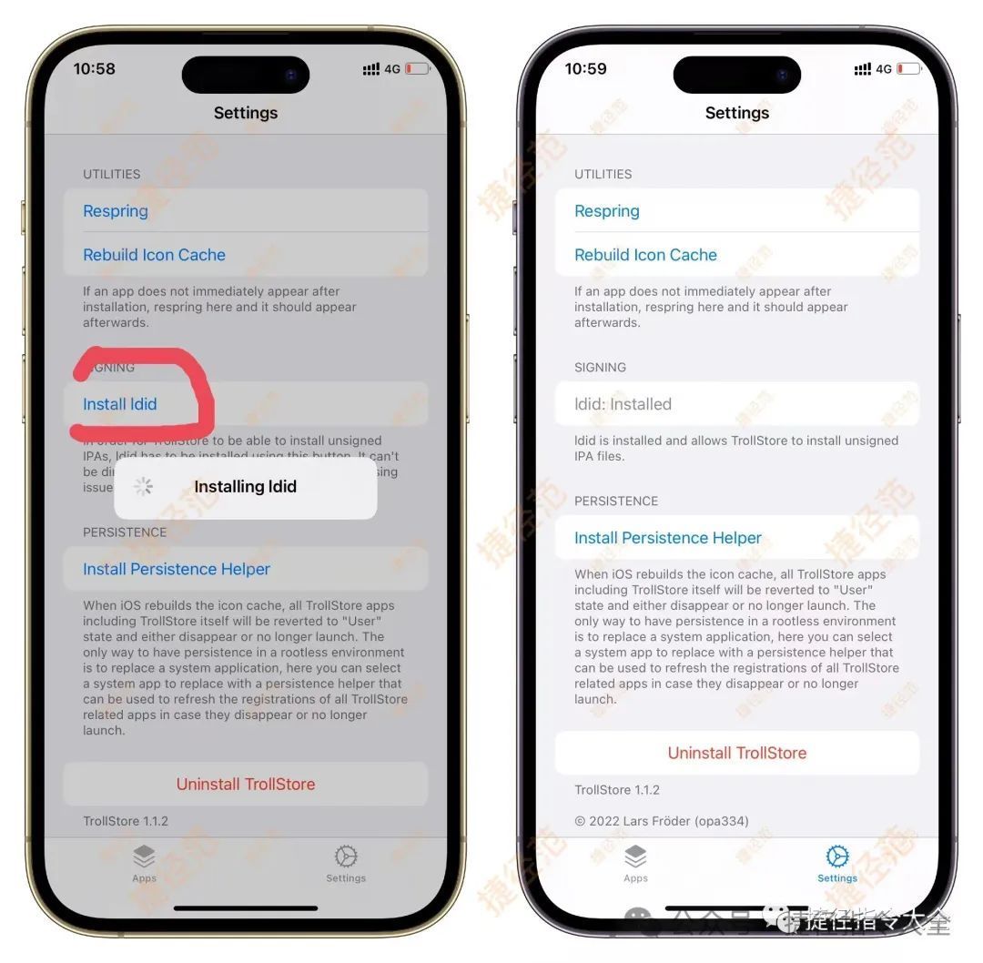 安装好TrollStore后,桌面上会出现,接着打开,安装idid这样就完成了.
