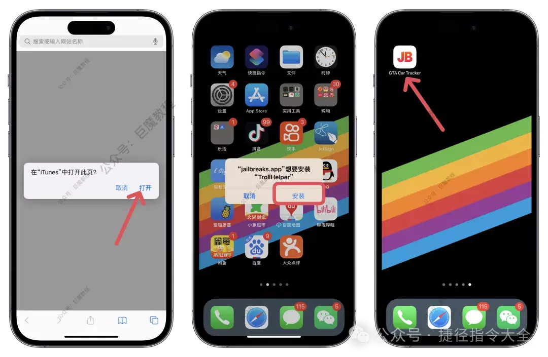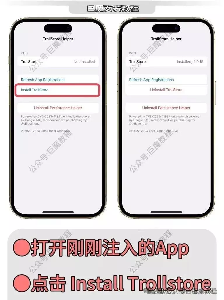2.其他版本(除iOS17.0)需要通过TrollInstallerX来安装 ;