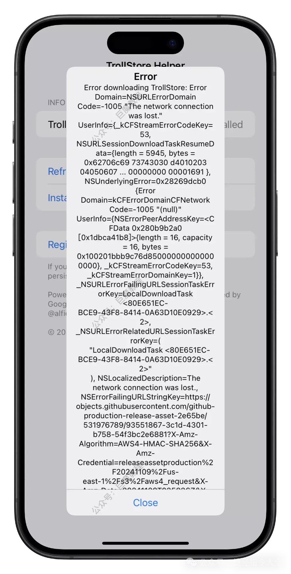 TrollStore安装过程中,安装IDID没有反应,或者安装TrollStore没有反应或者报错,根本原因都是网络问题.