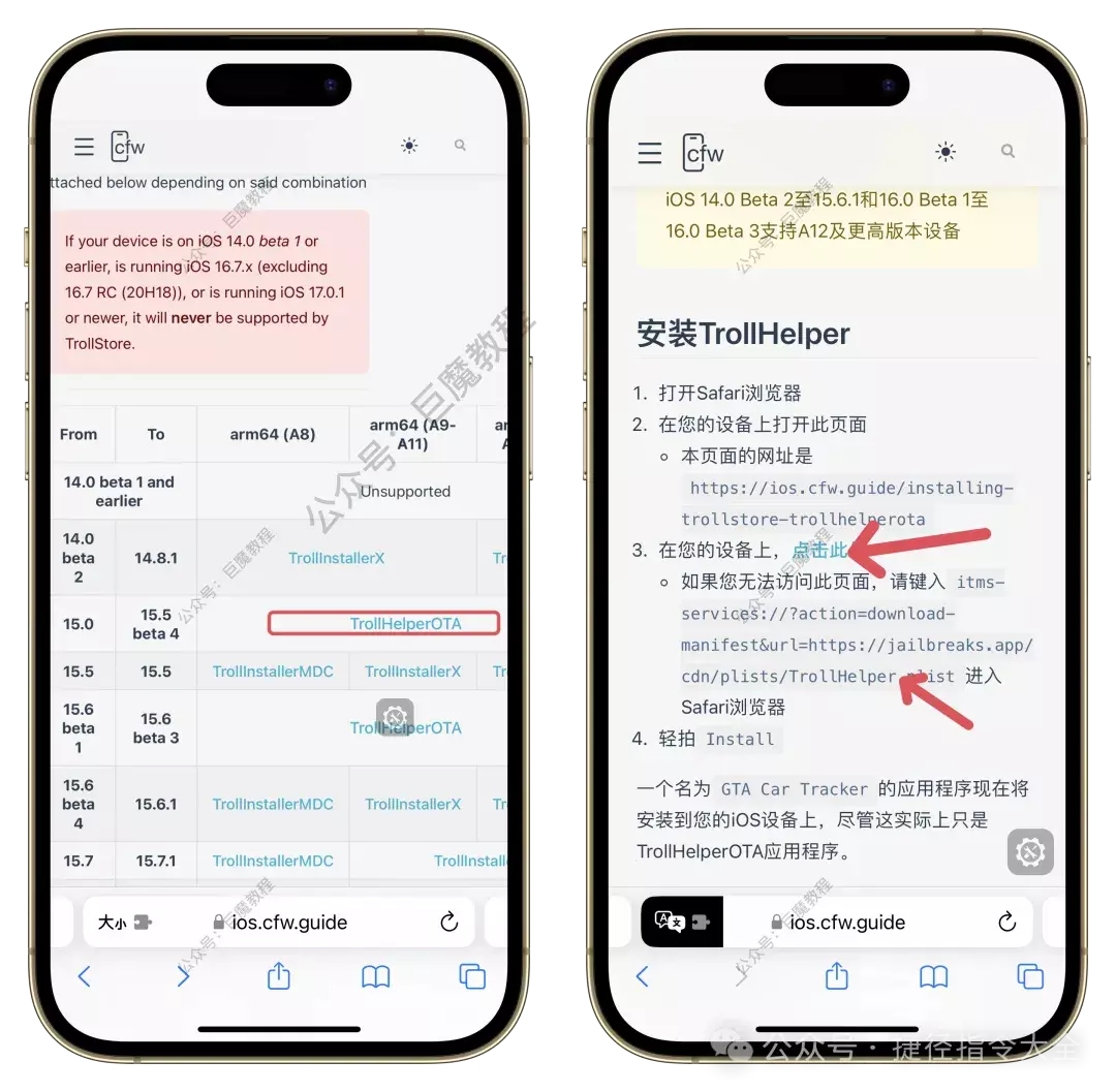 1.iOS14.0Beta 2- iOS15.6.1以及iOS16.0 Beta 1- iOSBeta 3都可以通过TrollHelper OTA安装,也就是可以实现在线安装;