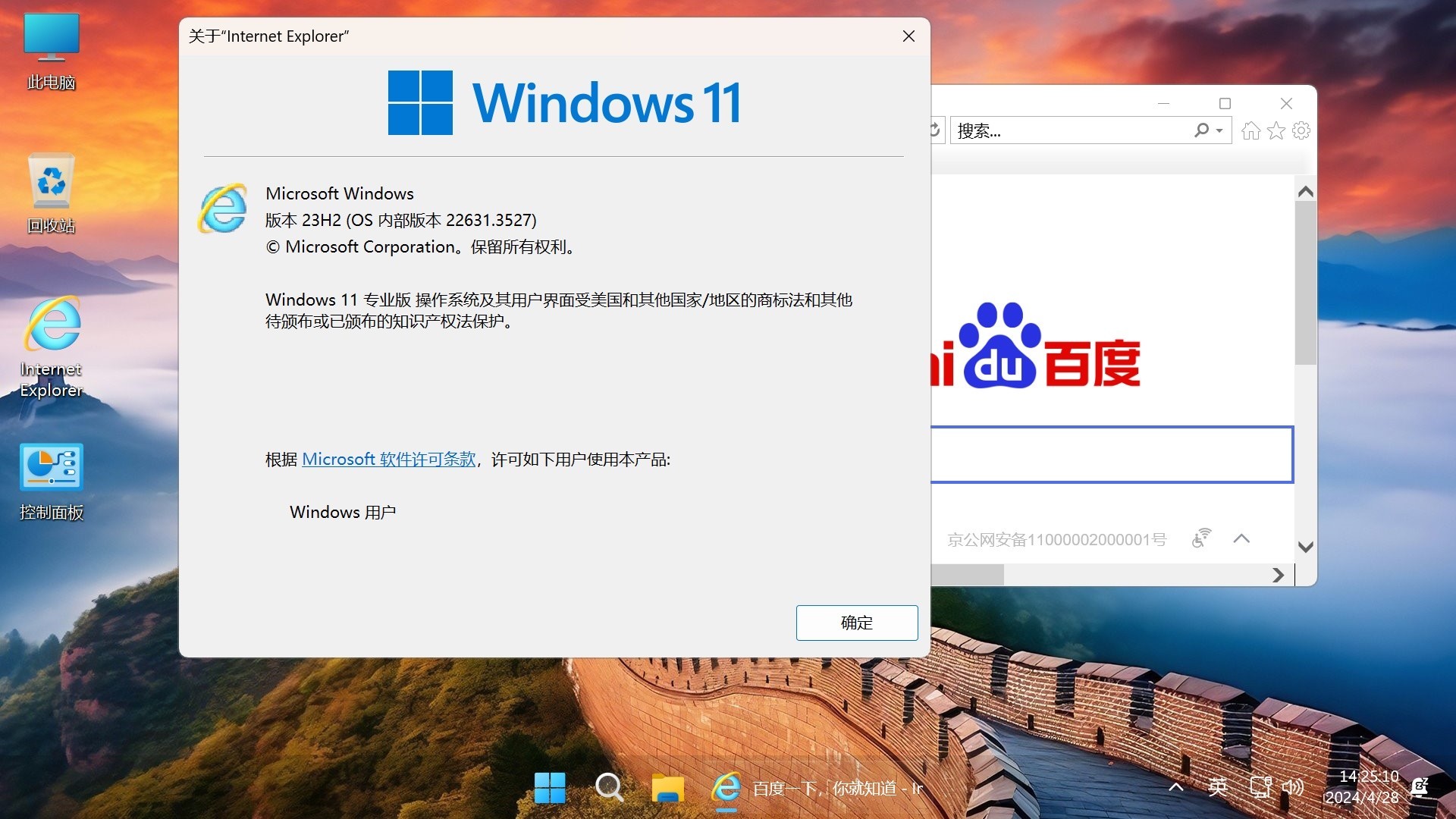 - IE主页默认设置为百度,原版是先打开微软再跳转百度。