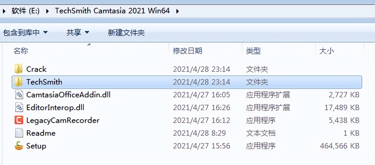 1、在下载解压得到camtasia studio 2021安装包和补丁文件;